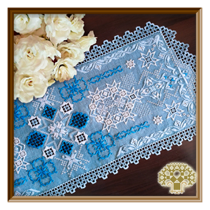 Embrace the elegance of winter with our Hardanger pattern inspired by the beauty of frost. This intricate design combines the delicate art of Hardanger with specialty stitches, perfect for adding a touch of winter charm to your needlework projects.